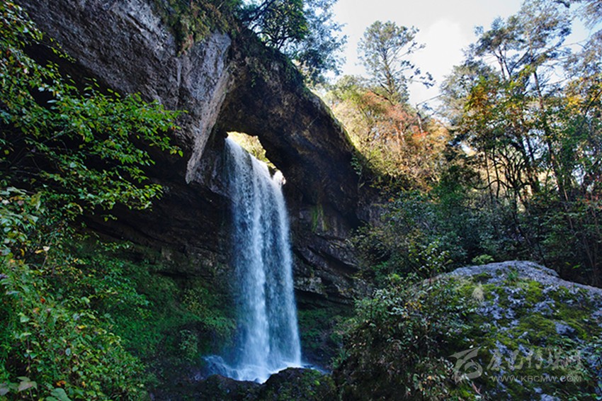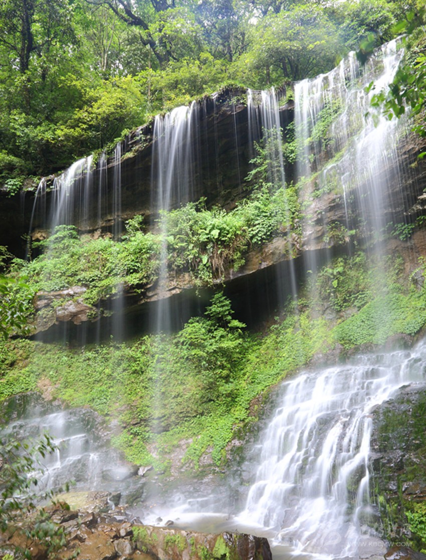 我的腳步?jīng)]有停留,再轉(zhuǎn)過(guò)一個(gè)彎道,瀑布就不見了,像我樸素的心歷經(jīng)了一場(chǎng)美妙的幻境一樣忽然。我聽到前方有更大的水聲跌落,仰頭就見一道更高的瀑布從高山峭壁之間,凌空垂下,水花飛濺的聲音響徹山谷。腳下的石徑像有生命似的蜿蜒穿入了瀑布之中,我登上去,站在其間看著瀑布從眼前落下,大口呼吸,心胸豁然開朗,這是瀑布給我的啟迪啊。