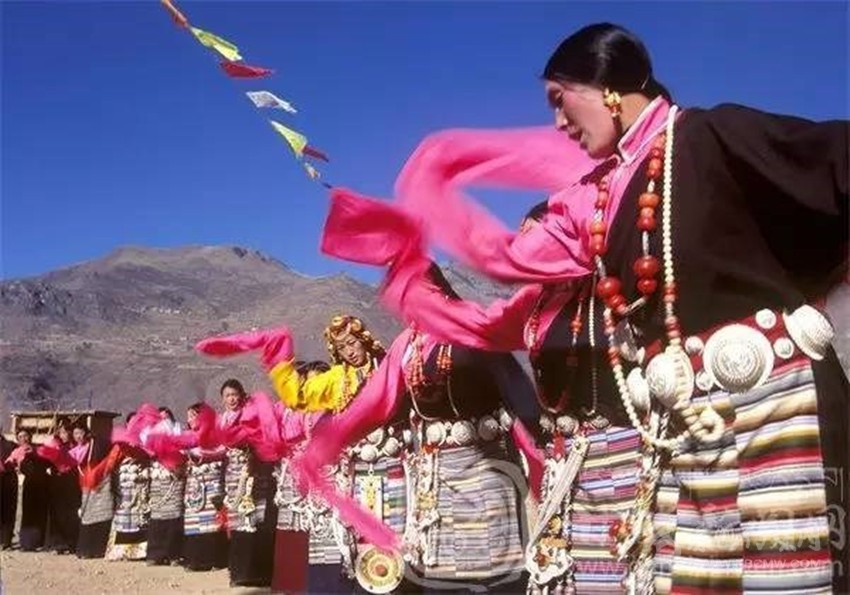 新龍鍋莊享譽藏區(qū),被譽為中國鍋莊之鄉(xiāng)。新龍鍋莊獨樹一幟,風格與其他藏區(qū)的鍋莊迥異。新龍鍋莊據(jù)說是在格薩爾時代,有一位會唱山歌的商人,名叫阿俄絨布,他游走經(jīng)商各地。每到一個地方,阿俄絨布總是一邊經(jīng)商,一邊唱著山歌。他來到新龍以后,就獨創(chuàng)了一種舞蹈,并傳授給當?shù)厝耍@種舞蹈很快在新龍地區(qū)流行起來。由于新龍與世隔絕,這種舞蹈沒有外傳,發(fā)展成為現(xiàn)在的“新龍鍋莊”。