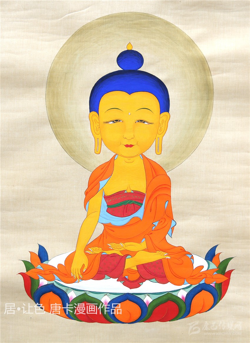 唐卡是藏族最具代表性的藝術(shù)門類之一,在其千年的傳承歷史中吸收融合了印度、尼泊爾等多地的藝術(shù)元素,發(fā)展成為極具雪域特色和審美價(jià)值的藝術(shù)形式。傳統(tǒng)唐卡缺乏立體感和形象感,畫面層次模糊,人物形象單薄,不利于民族文化傳承,“對于不懂畫的人來說,這種畫法他們看不懂?!被诖耍印ぷ屔珜μ瓶ɡL畫技法作了改良,結(jié)合現(xiàn)代漫畫,以寫實(shí)的手法,實(shí)現(xiàn)活態(tài)傳承、永續(xù)流傳目的。