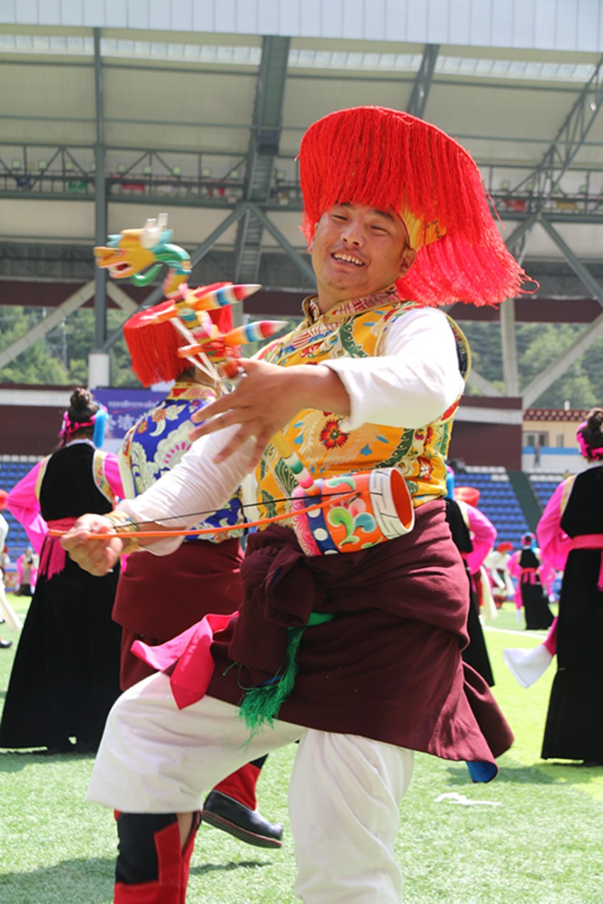 正在表演的扎西。 格桑澤仁 攝