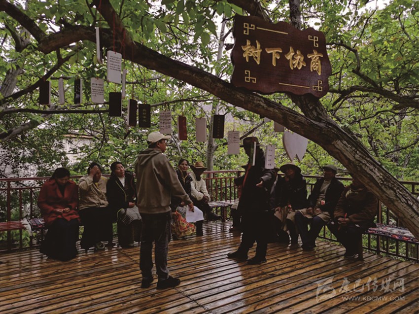 樹下協(xié)商話和諧 文明新風潤心田