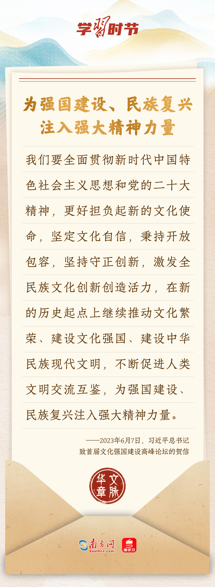 2023年6月2日,習(xí)近平總書(shū)記在北京出席文化傳承發(fā)展座談會(huì)時(shí)強(qiáng)調(diào),要堅(jiān)定文化自信、擔(dān)當(dāng)使命、奮發(fā)有為,共同努力創(chuàng)造屬于我們這個(gè)時(shí)代的新文化,建設(shè)中華民族現(xiàn)代文明。