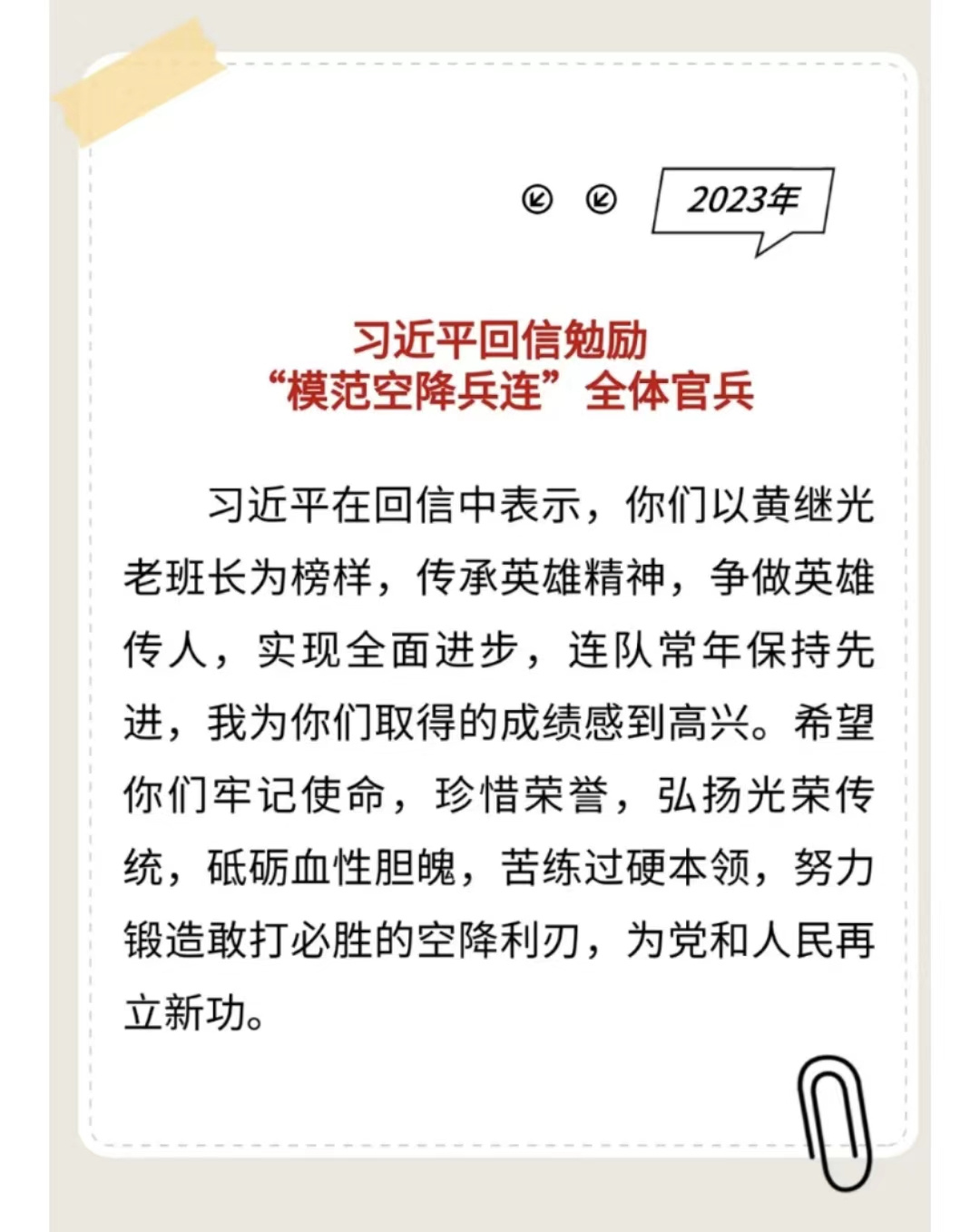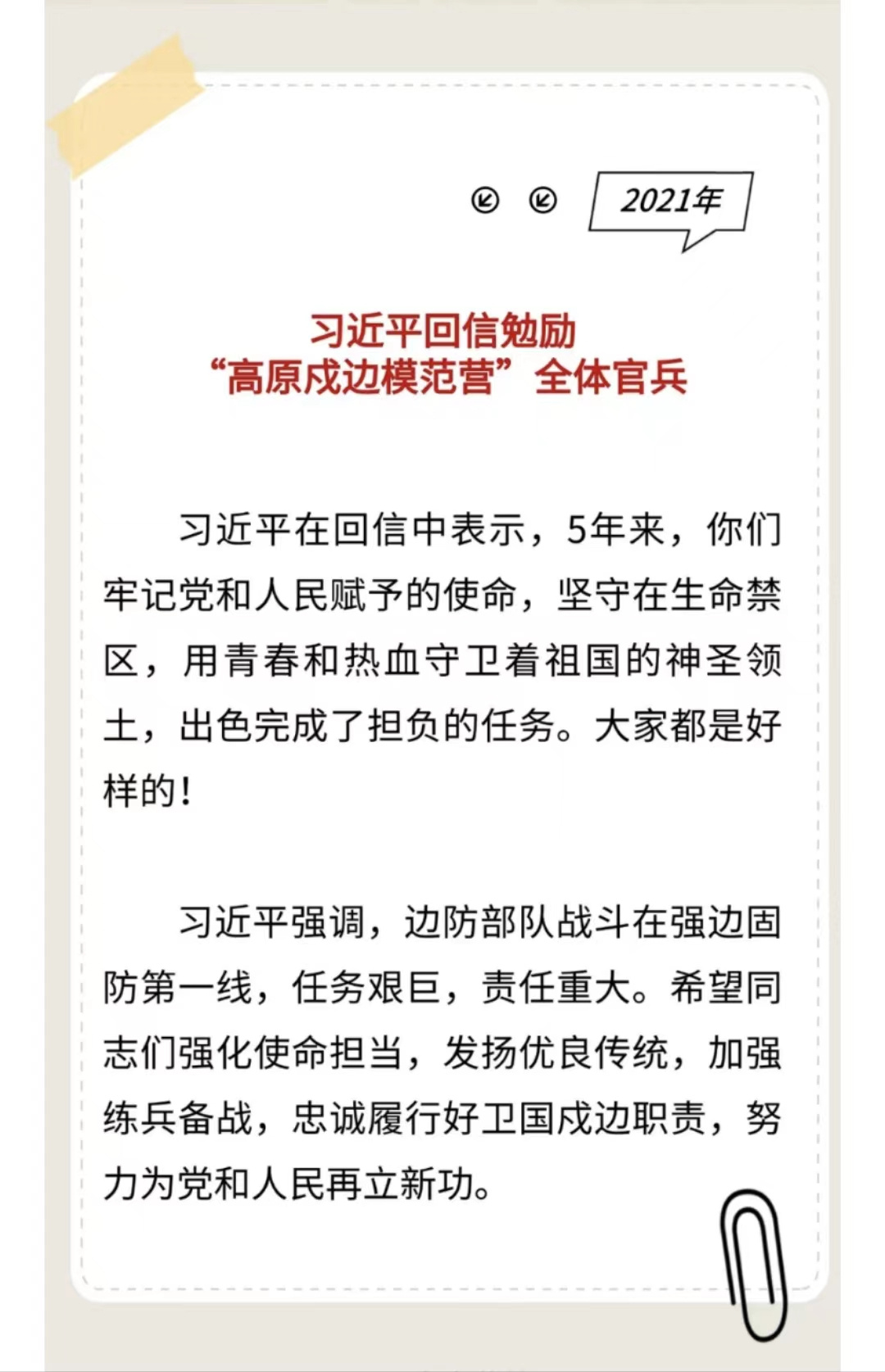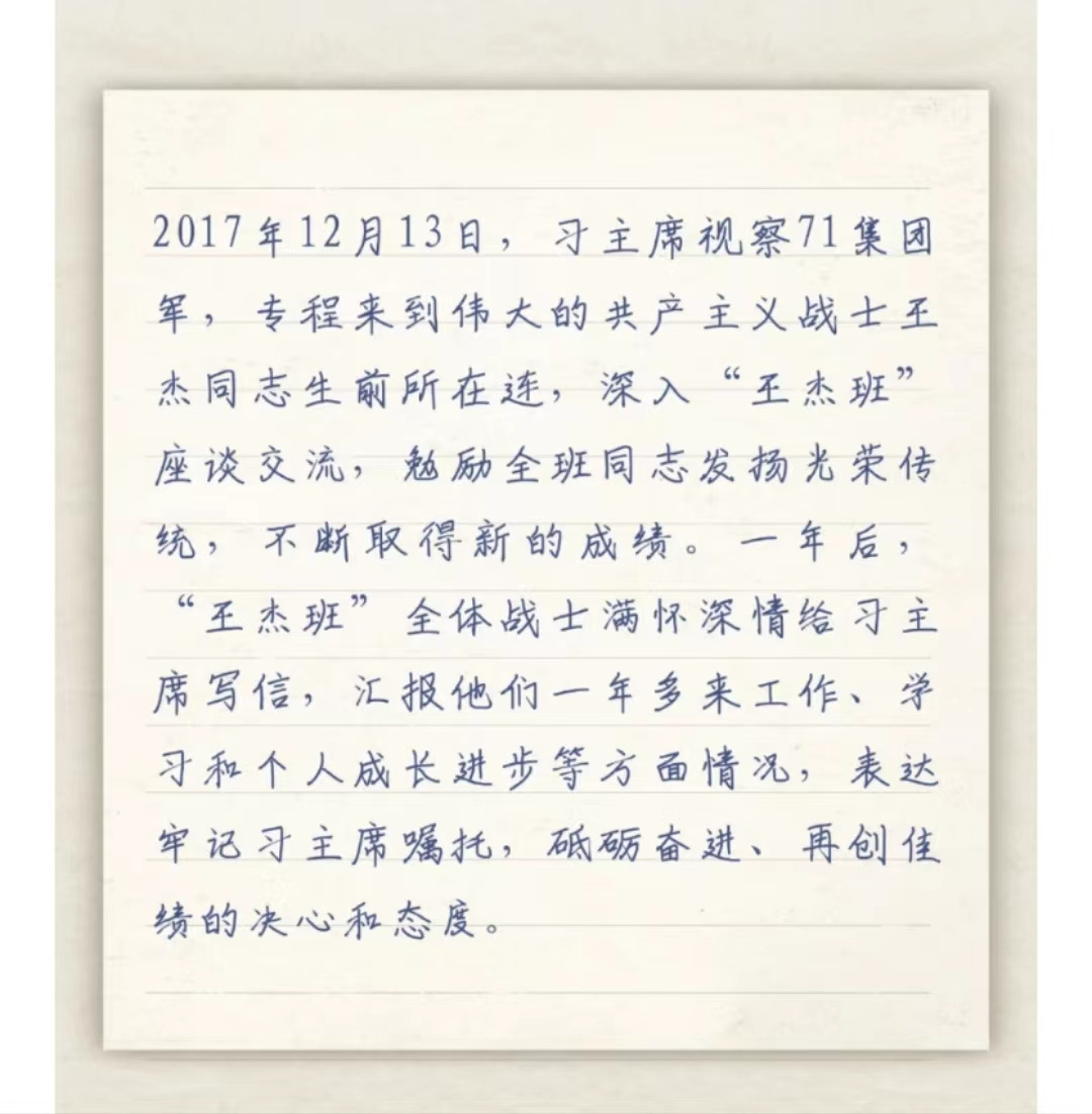 習主席給“強軍精武紅四連”全體官兵回信