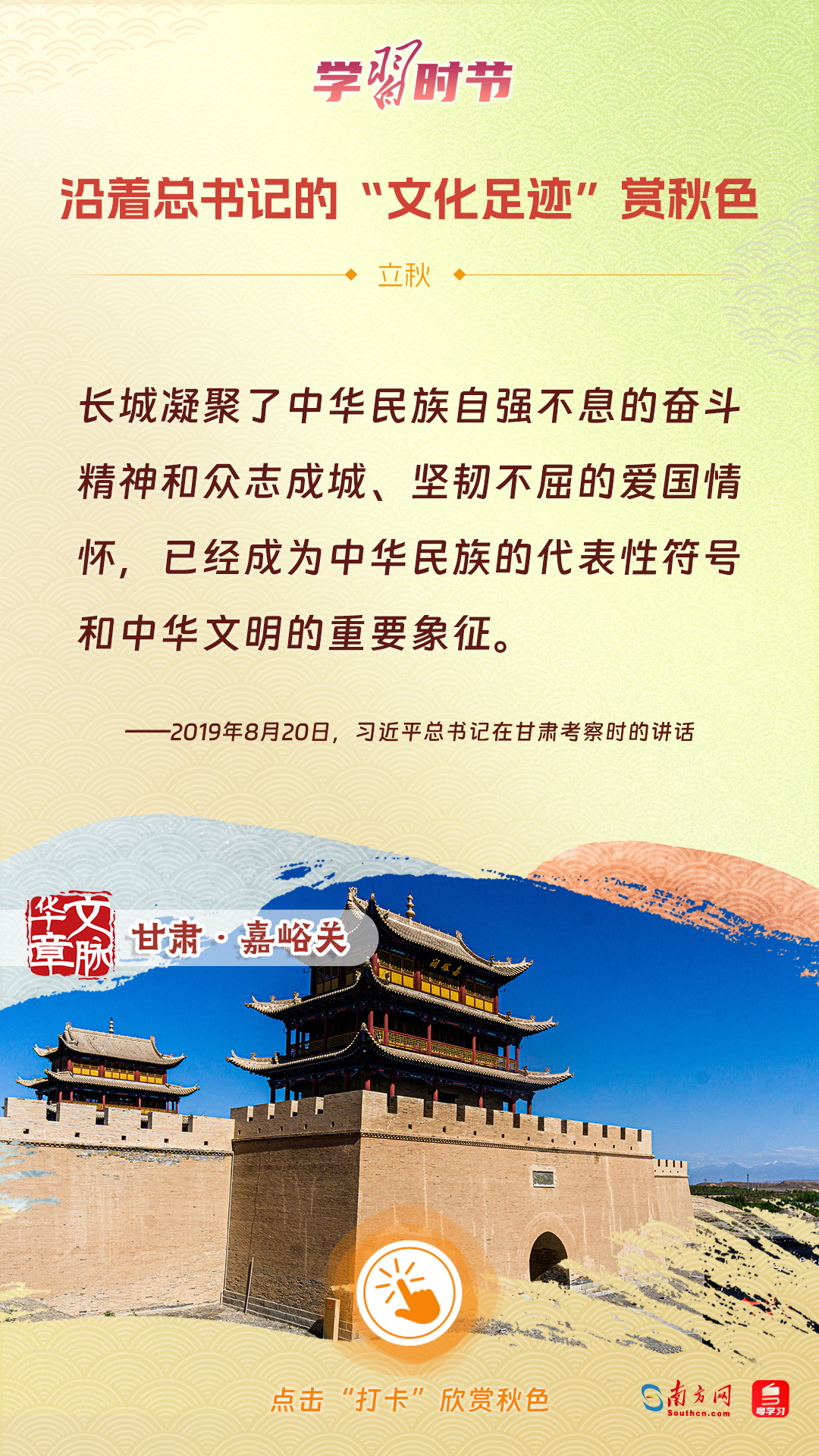 立秋之際,讓我們一起跟隨習(xí)近平總書記的足跡,學(xué)習(xí)習(xí)近平總書記關(guān)于文化建設(shè)的重要論述,感受全國各地文化地標(biāo)古跡的秋意,汲取文化自信的強(qiáng)大力量。