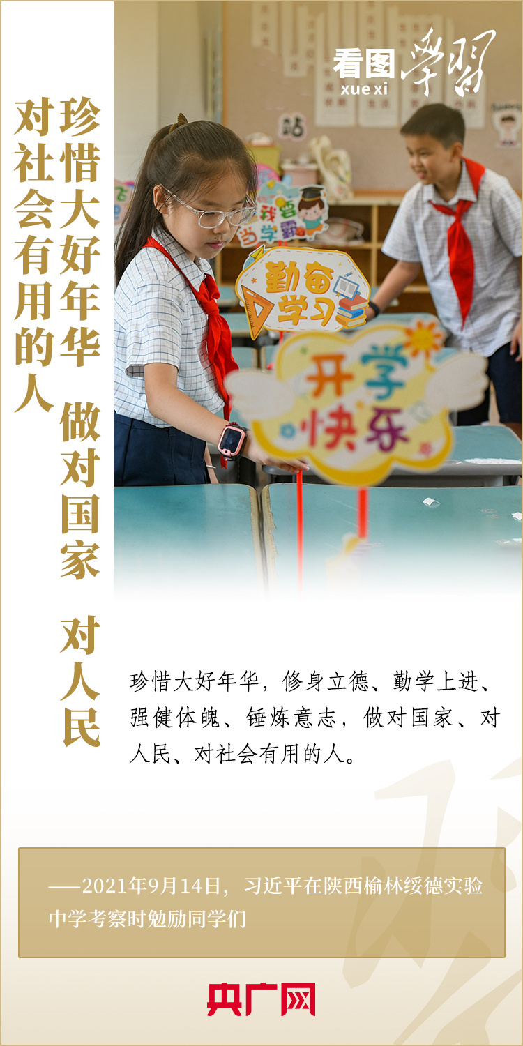 “少年兒童是祖國(guó)的未來。”一直以來,習(xí)近平總書記高度重視和關(guān)心青少年的健康成長(zhǎng)。每每走到校園和學(xué)生們中間,總書記總會(huì)與他們談學(xué)習(xí)、談理想、談成長(zhǎng),鼓勵(lì)他們努力為自己贏得人生出彩的機(jī)會(huì),做對(duì)國(guó)家、對(duì)人民、對(duì)社會(huì)有用的人。又是一年開學(xué)季,讓我們一起重溫總書記對(duì)莘莘學(xué)子的殷切期望。一起來學(xué)習(xí)!