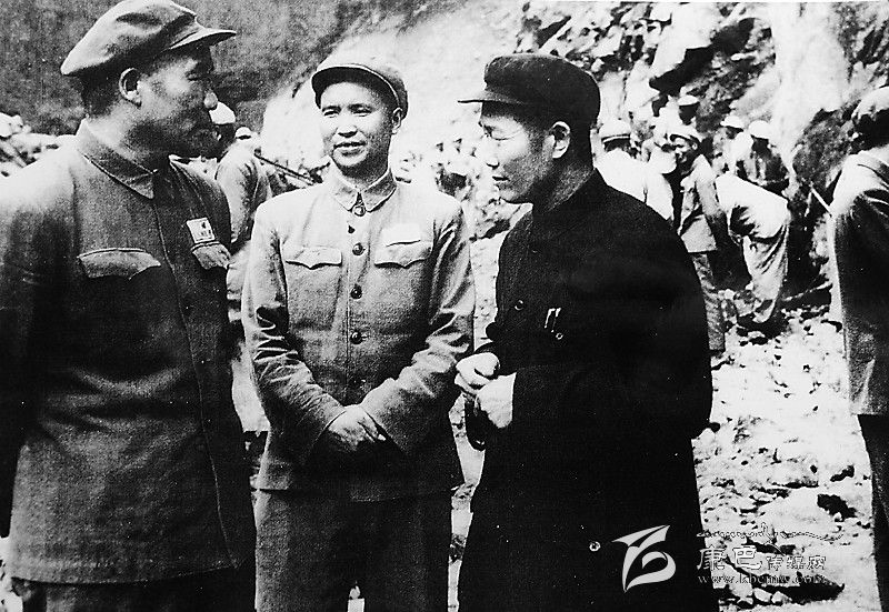 1953年秋,西南軍區(qū)副司令員李達代表賀龍司令員慰問川藏公路筑路部隊和職工,這是陳明義(中)陪同李達(左)在波密視察公路進展情況。 (資料圖片)