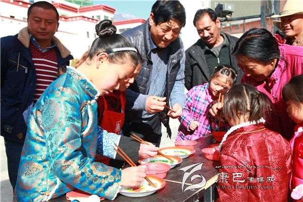 據了解,從大年初三開始,在香巴拉廣場上,除了鍋莊表演外,最吸引人的就是新春游園活動。大年初五早上,在歡快的音樂聲中,群眾成群結隊的趕往香巴拉休閑廣場參加新春游園活動。這次的游園活動除了夾珠子、投飛鏢等項目外,還有筷子入瓶、彈球入杯等內容。活動現(xiàn)場,擁色帶著侄女甜甜早早就開始排隊,她們已經玩了好幾個游戲,掙了好幾張兌獎卷。她告訴筆者,游園活動的獎品雖然不多,但新年能拿到禮物,心里還是樂滋滋的,更為重要的是能和大家一起熱熱鬧鬧過個年。