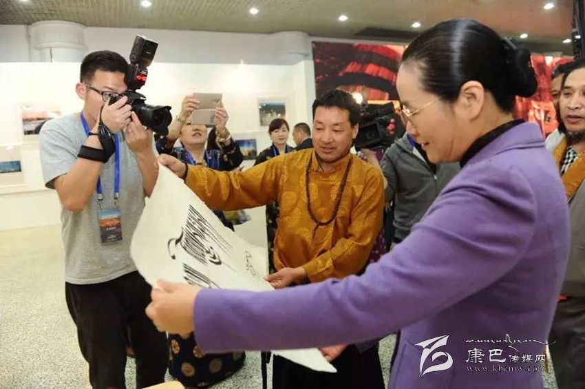 在展覽中心,趙雯在州政府副州長葛寧等的陪同下,觀看了甘孜旅游宣傳片,參觀了甘孜旅游圖片展、藏傳佛教宮廷精品文物展、“藏藝通”旅游商品展和藏文書法展,仔細(xì)聽取講解介紹,對甘孜州舉辦此次活動給予了充分肯定。趙雯還興致勃勃地觀看了四川省級藏文書法傳承人、著名的藏文書法家巴松鄧珠現(xiàn)場藏文書法表演,品嘗了甘孜州康定藍(lán)逸高原食品有限公司的高原特色產(chǎn)品。