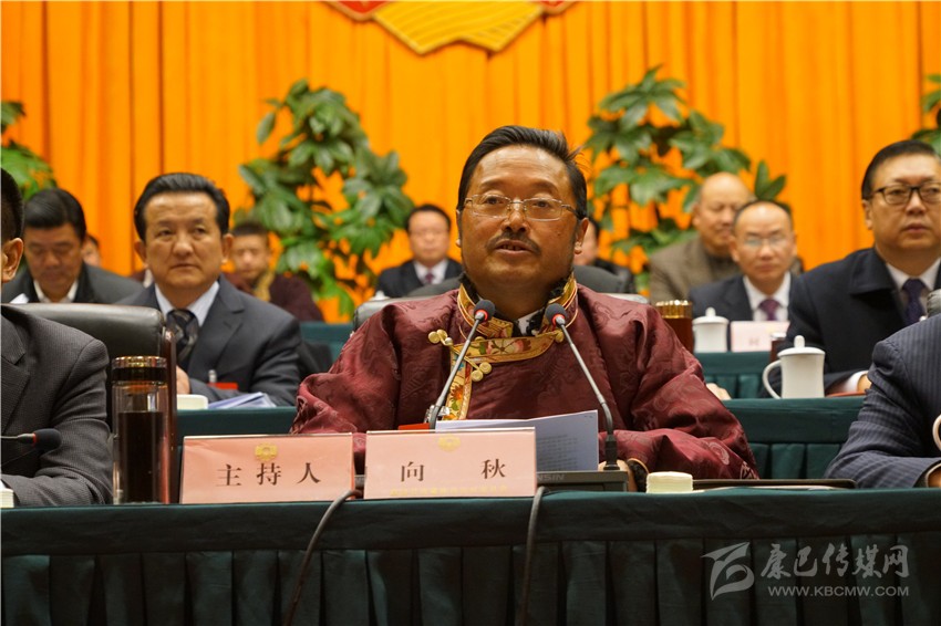 向秋指出,中國(guó)人民政治協(xié)商會(huì)議甘孜藏族自治州第十三屆委員會(huì)第一次會(huì)議,是在全州各族人民深入貫徹落實(shí)黨的十八屆六中全會(huì)、省委十屆九次全會(huì)和州第十一次黨代會(huì)精神,全面決戰(zhàn)小康,突出抓好脫貧奔康和長(zhǎng)治久安兩個(gè)關(guān)鍵,統(tǒng)籌抓好發(fā)展民生穩(wěn)定三件大事,精心實(shí)施扶貧攻堅(jiān)、依法治州、產(chǎn)業(yè)富民、交通先行、城鄉(xiāng)提升、生態(tài)文明建設(shè)“六大戰(zhàn)略”,奮力推動(dòng)全州科學(xué)發(fā)展、創(chuàng)新發(fā)展、綠色發(fā)展,建設(shè)美麗甘孜、生態(tài)甘孜、和諧甘孜、小康甘孜的關(guān)鍵時(shí)期,召開(kāi)的一次非常重要的會(huì)議,意義重大而深遠(yuǎn)!會(huì)議的指導(dǎo)思想是:在中共甘孜州委的堅(jiān)強(qiáng)領(lǐng)導(dǎo)下,高舉中國(guó)特色社會(huì)主義偉大旗幟,堅(jiān)持以馬列主義、毛澤東思想、鄧小平理論、“三個(gè)代表”重要思想和科學(xué)發(fā)展觀為指導(dǎo),深入學(xué)習(xí)貫徹習(xí)近平總書(shū)記系列重要講話精神和州第十一次黨代會(huì)精神,堅(jiān)決貫徹落實(shí)中央治藏方略和省委藏區(qū)工作思路,緊扣黨政工作中心和全州工作大局,緊緊圍繞州委“一個(gè)目標(biāo)、兩個(gè)關(guān)鍵、三件大事、六大戰(zhàn)略”總體工作格局,主動(dòng)擔(dān)當(dāng)、主動(dòng)作為、主動(dòng)垂范,不斷提高管理能力和科學(xué)化水平,努力為建設(shè)美麗生態(tài)和諧小康甘孜作出積極貢獻(xiàn)。這次會(huì)議的主要任務(wù)是:審議十二屆州政協(xié)常委會(huì)工作報(bào)告和提案工作報(bào)告;選舉十三屆州政協(xié)主席、副主席、秘書(shū)長(zhǎng)和常務(wù)委員;列席州第十二屆人民代表大會(huì)第一次會(huì)議,討論政府工作報(bào)告和其他報(bào)告;聽(tīng)取州委領(lǐng)導(dǎo)講話。