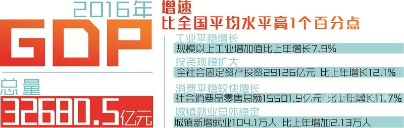 本網(wǎng)訊(記者 陳巖 梁現(xiàn)瑞 李龍?。?/span>1月22日,省政府新聞辦召開新聞發(fā)布會(huì),發(fā)布2016年經(jīng)濟(jì)數(shù)據(jù)。經(jīng)國(guó)家統(tǒng)計(jì)局審定,2016年全省實(shí)現(xiàn)地區(qū)生產(chǎn)總值(GDP)32680.5億元,按可比價(jià)格計(jì)算比上年增長(zhǎng)7.7%,增速比全國(guó)平均水平高1個(gè)百分點(diǎn)。全省經(jīng)濟(jì)運(yùn)行呈現(xiàn)總體穩(wěn)定、穩(wěn)中有進(jìn)、穩(wěn)中有好的發(fā)展態(tài)勢(shì),實(shí)現(xiàn)“十三五”良好開局。