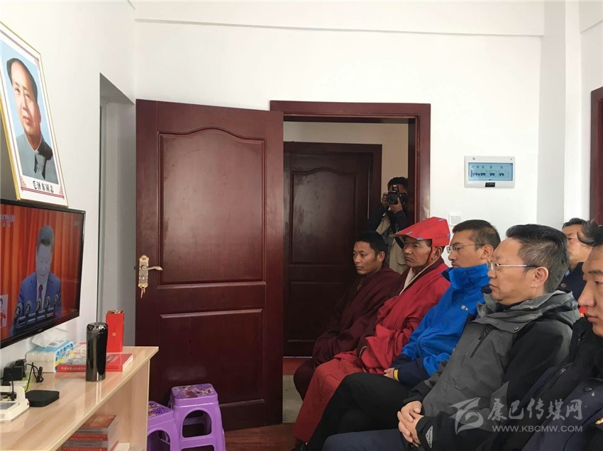 州財政局干部與聯(lián)系寺廟僧侶一同觀看十九大開幕會。