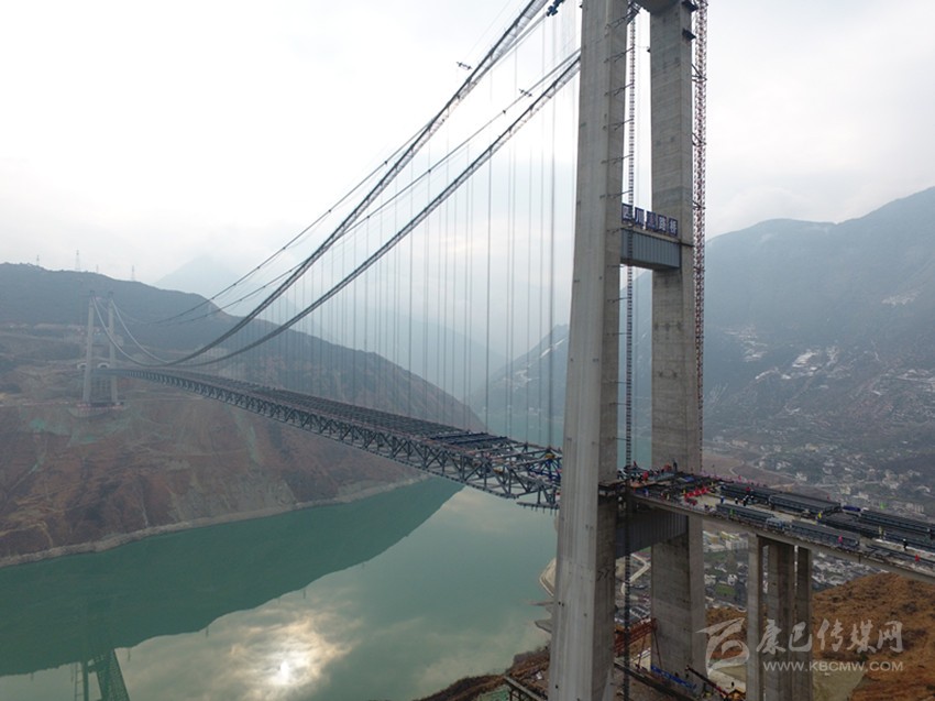 “大橋鋼桁梁完成合龍,標(biāo)志著大橋全面進(jìn)入橋面施工階段,也標(biāo)志著這座建設(shè)在高海拔、高地震烈度帶、復(fù)雜風(fēng)場環(huán)境下的超大跨徑鋼桁梁懸索橋,施工中最難、風(fēng)險最大的施工全面完工。”雅康高速項目部副經(jīng)理柏國勝激動地說。