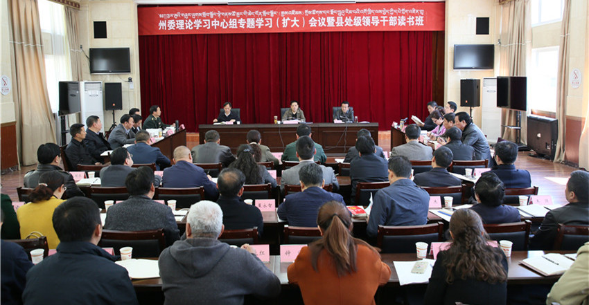 本網(wǎng)訊(記者 楊杰 文/圖)為進(jìn)一步學(xué)習(xí)好 、宣傳好、貫徹好黨的十九大精神和習(xí)近平總書記來川視察重要講話精神,把全州各級(jí)黨員領(lǐng)導(dǎo)干部的思想和行動(dòng)統(tǒng)一到講話精神上來,把力量和智慧凝聚到習(xí)近平總書記提出的目標(biāo)要求上來,4月4日,州委理論學(xué)習(xí)中心組舉行專題學(xué)習(xí)(擴(kuò)大)會(huì)暨縣級(jí)主要領(lǐng)導(dǎo)干部讀書班。州委書記劉成鳴主持學(xué)習(xí)會(huì)并講話。州人大常委會(huì)主任李康參加學(xué)習(xí)。