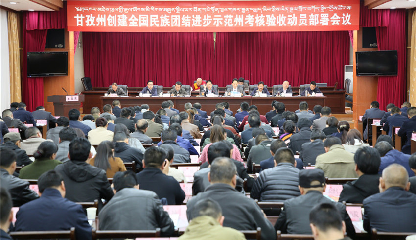 本網(wǎng)訊 近日,我州創(chuàng)建全國(guó)民族團(tuán)結(jié)進(jìn)步示范州考核驗(yàn)收動(dòng)員會(huì)在康定召開(kāi)。州委書(shū)記劉成鳴出席會(huì)議并講話。他強(qiáng)調(diào),全州上下要以黨的十九大、習(xí)近平總書(shū)記關(guān)于民族工作系列重要講話和省委書(shū)記彭清華來(lái)州視察調(diào)研重要講話精神為指引,準(zhǔn)確把握全州民族工作面臨的新情況新問(wèn)題,不斷加強(qiáng)和深化民族團(tuán)結(jié)進(jìn)步創(chuàng)建活動(dòng),不斷團(tuán)結(jié)凝聚起全州各族群眾力量,為同步全面建成小康社會(huì),打下堅(jiān)實(shí)基礎(chǔ),營(yíng)造良好環(huán)境,提供不懈動(dòng)力。州委副書(shū)記、州長(zhǎng)肖友才主持會(huì)議,州人大常委會(huì)主任李康、州政協(xié)主席向秋出席會(huì)議。