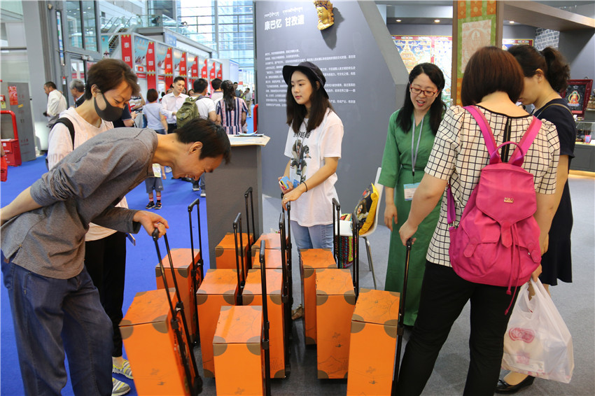 318線(xiàn)精品旅游線(xiàn)路圖、創(chuàng)意拉桿箱;原本一些靜態(tài)的物品被潮流的設(shè)計(jì)之后,在“藝?甘孜”展館門(mén)口屢屢賣(mài)到脫銷(xiāo)。此次文博會(huì),甘孜州全境文化產(chǎn)業(yè)發(fā)展公司順應(yīng)旅游市場(chǎng)推出了一系列“接地氣”的文化創(chuàng)意產(chǎn)品。通過(guò)傳統(tǒng)文化和日常生活的無(wú)縫銜接,旅游、文物在老百姓心中變得更加生動(dòng)有趣、接地氣。該公司運(yùn)營(yíng)總監(jiān)梅小恩說(shuō):“由于多次參加布展,考慮到消費(fèi)者購(gòu)物后,攜帶很不方便。于是前期公司就設(shè)計(jì)制成這款具有康巴文化的文創(chuàng)產(chǎn)品IP形象,雖然是一款紙箱,但款式都以真皮箱相仿,設(shè)計(jì)理念是康巴漢子騎著摩托車(chē)奔馳在318線(xiàn)上,這一理念得到了市民認(rèn)同,前來(lái)購(gòu)買(mǎi)的人很多,消量特別好。下步將立馬上線(xiàn),推出皮箱系列,到今天為止訂單都很多了?!?/p>