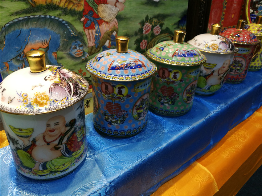 付國華在介紹時說,“高溫粉彩”必須以線條繪畫,將陶瓷唐卡染上顏料燒制,燒制完后再上色再燒制,然后再上色再燒制,在高溫1200度反復燒制五六次,才能達到一幅比較完整的唐卡。下步公司將黑陶作為新的挖掘目標,相信在馮建華老師的指導下,我州黑陶高溫粉彩陶瓷藝術將呈現出新亮點,“高溫粉彩”陶瓷藝術將在廣闊的市場中,為喜愛這一藝術品的消費者提供需求。