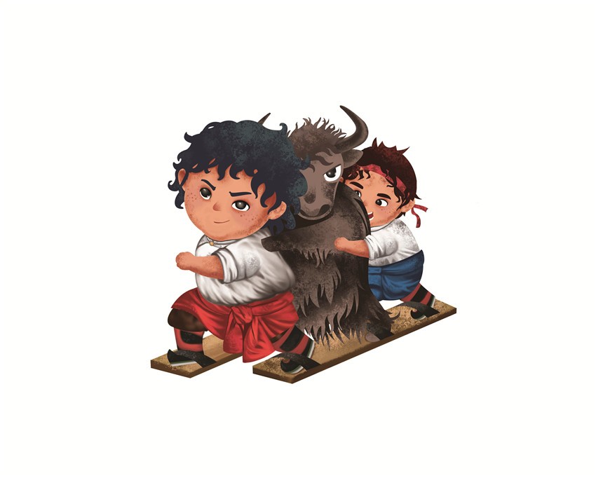 據(jù)悉,該卡通形象由康巴文化研究院設(shè)計(jì),最早出現(xiàn)在去年的環(huán)貢嘎山百公里越野挑戰(zhàn)賽上,在各國(guó)越野高手云集的賽場(chǎng)上,一名身著傳統(tǒng)服飾的小藏娃牽著牦牛奔跑的形象令人過目不忘。而此次省民運(yùn)會(huì)將繼續(xù)沿用“小藏娃和牦牛洛洛的形象”,康巴文化研究院組織專人設(shè)計(jì),按照既生動(dòng)可愛又準(zhǔn)確把握運(yùn)動(dòng)項(xiàng)目特征的要求,將此次運(yùn)動(dòng)會(huì)中的蹴球、陀螺、射弩、高腳競(jìng)速、板鞋競(jìng)速、押加、珍珠球、民族式摔跤等8個(gè)競(jìng)賽項(xiàng)目以卡通形象展現(xiàn)。