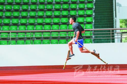 高腳競速運(yùn)動(dòng)是由運(yùn)動(dòng)員雙手各持一桿,同時(shí)腳踩桿上的腳踏蹬,在田徑場上奔跑,根據(jù)跑完同等距離用時(shí)多少定名次;其比賽形式分為單人賽、接力賽和混合接力賽,按賽程分有50米、100米、200米、400米和4×100米。