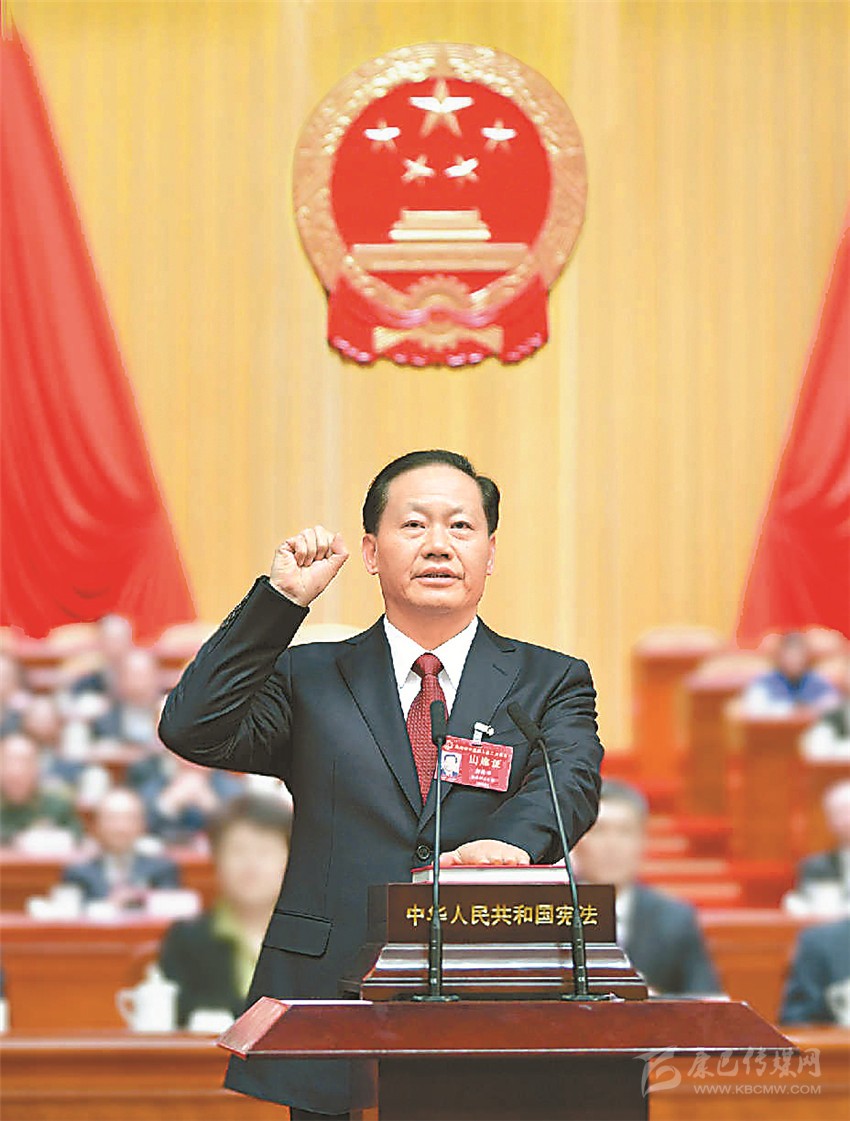 新當(dāng)選的省人大常委會主任彭清華進行憲法宣誓。