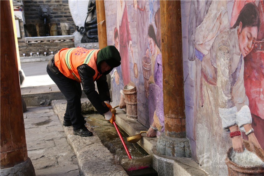 每逢節(jié)假日,是環(huán)衛(wèi)工人最忙最累的時(shí)候。2月5日下午,康定強(qiáng)盛公司清洗組組長(zhǎng)楊曉康帶著全組工作人員來(lái)到康定市水井子,打掃整個(gè)水井子的環(huán)境衛(wèi)生?!俺跻弧畵岊^水’是多年來(lái)康定市民的過年習(xí)俗,我們現(xiàn)在把這里打掃干凈,讓市民們?cè)凇畵岊^水’時(shí)有干凈整潔的環(huán)境?!睏顣钥蹈嬖V記者。