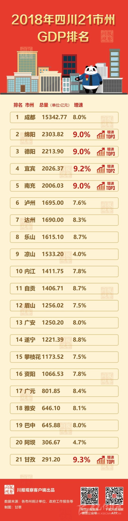 能夠率先拔得頭籌,必然有過人之處。分析發(fā)現(xiàn),綿陽、德陽、宜賓、南充4市,去年的GDP增速都保持在9%及以上。而全省21個市州GDP增速在9%及以上的,總共只有5個,還有一個席位被甘孜占領。