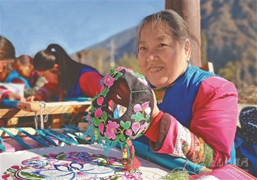 藏族繡娘高永輝展示繡品。圖片由本網(wǎng)資料庫(kù)提供