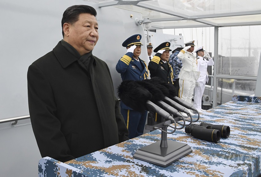 圖為習近平檢閱艦艇編隊。