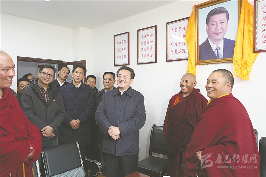 一路翻山越嶺,鄧小剛首先深入駐地營(yíng)房和基層服務(wù)中心,看望一線武警官兵、公安干警、消防隊(duì)員和基層黨員干部,帶去省委的關(guān)心慰問(wèn)。他指出,奮戰(zhàn)在雪域高原一線的同志戰(zhàn)嚴(yán)寒、斗風(fēng)雪、抗缺氧,迎難而上、頑強(qiáng)拼搏,為藏區(qū)繁榮發(fā)展長(zhǎng)治久安作出了重要貢獻(xiàn),要堅(jiān)持嚴(yán)管和厚愛(ài)相結(jié)合,多了解基層一線同志的情況,關(guān)心他們的工作生活,聽取工作建議,幫助解決實(shí)際困難問(wèn)題,注重在一線培養(yǎng)鍛煉干部,引導(dǎo)廣大黨員干部立足本職崗位爭(zhēng)做奉獻(xiàn)。在藏傳佛教寺廟和僧舍,鄧小剛同僧尼、信眾深入交心談心,了解他們修行和生活情況,勉勵(lì)他們發(fā)揚(yáng)愛(ài)國(guó)愛(ài)教、守法持戒優(yōu)良傳統(tǒng),多做利益眾生、造福社會(huì)的善事好事,發(fā)揮宗教促進(jìn)社會(huì)和諧的積極作用。在聽取州縣工作匯報(bào)后,他強(qiáng)調(diào),今年是新中國(guó)成立70周年,維護(hù)好藏區(qū)和諧穩(wěn)定責(zé)任重大,要樹牢“四個(gè)意識(shí)”,堅(jiān)定“四個(gè)自信”,做到“兩個(gè)維護(hù)”,全面貫徹黨的宗教工作基本方針,堅(jiān)持宗教中國(guó)化方向和獨(dú)立、自主、自辦原則,深入推進(jìn)藏傳佛教寺廟依法規(guī)范管理,營(yíng)造安全、規(guī)范、潔凈、有序的修行環(huán)境,積極引導(dǎo)宗教與社會(huì)主義社會(huì)相適應(yīng),深入扎實(shí)做好各項(xiàng)工作,促進(jìn)藏區(qū)繁榮發(fā)展長(zhǎng)治久安。