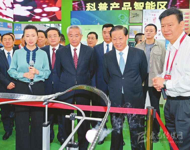 9月5日,全國政協(xié)副主席邵鴻,省委書記、省人大常委會主任彭清華及參會嘉賓參觀科博會展館,了解科技創(chuàng)新成果和轉(zhuǎn)化應(yīng)用情況。 歐陽杰 攝