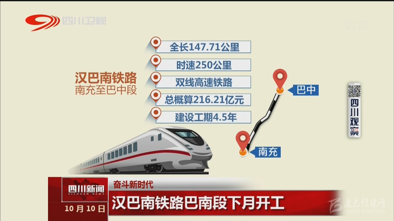 近日,省發(fā)改委對新建漢巴南鐵路南充至巴中段初步設(shè)計進(jìn)行了批復(fù)。項目正線全長147.71公里,時速250公里,為雙線高速鐵路,總概算為216.21億元,建設(shè)工期4年半,由省鐵投集團(tuán)公司和南充市、巴中市人民政府共同籌資建設(shè)。項目預(yù)計11月底全線開工建設(shè),到2024年建成通車后,巴中至南充最短運行時間約為35分鐘,待成南達(dá)萬鐵路建成投運后,巴中至成都運行時間可縮短至75分鐘左右。