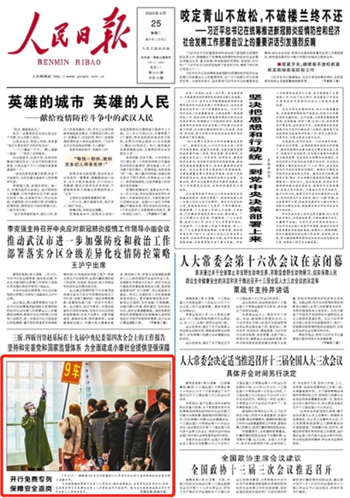 2月25日,《人民日?qǐng)?bào)》刊登題為《開(kāi)行免費(fèi)專列 保障安全返崗》的報(bào)道,聚焦川籍務(wù)工人員的免費(fèi)返崗專列。
