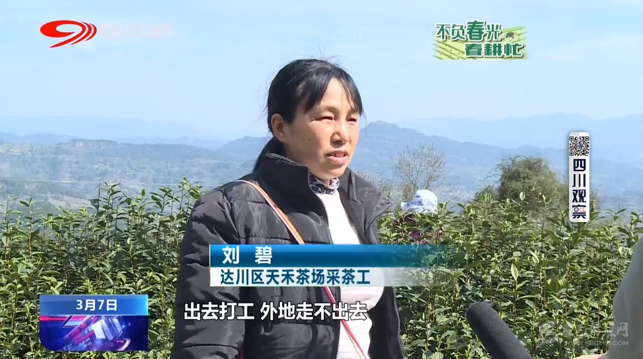 達川區(qū)天禾茶場采茶工劉碧:我們今年這個疫情期間出去打工外地走不出去,所以說我們聽了茶場招工,我們就到茶場找工作,掙點錢,賺點生活費。