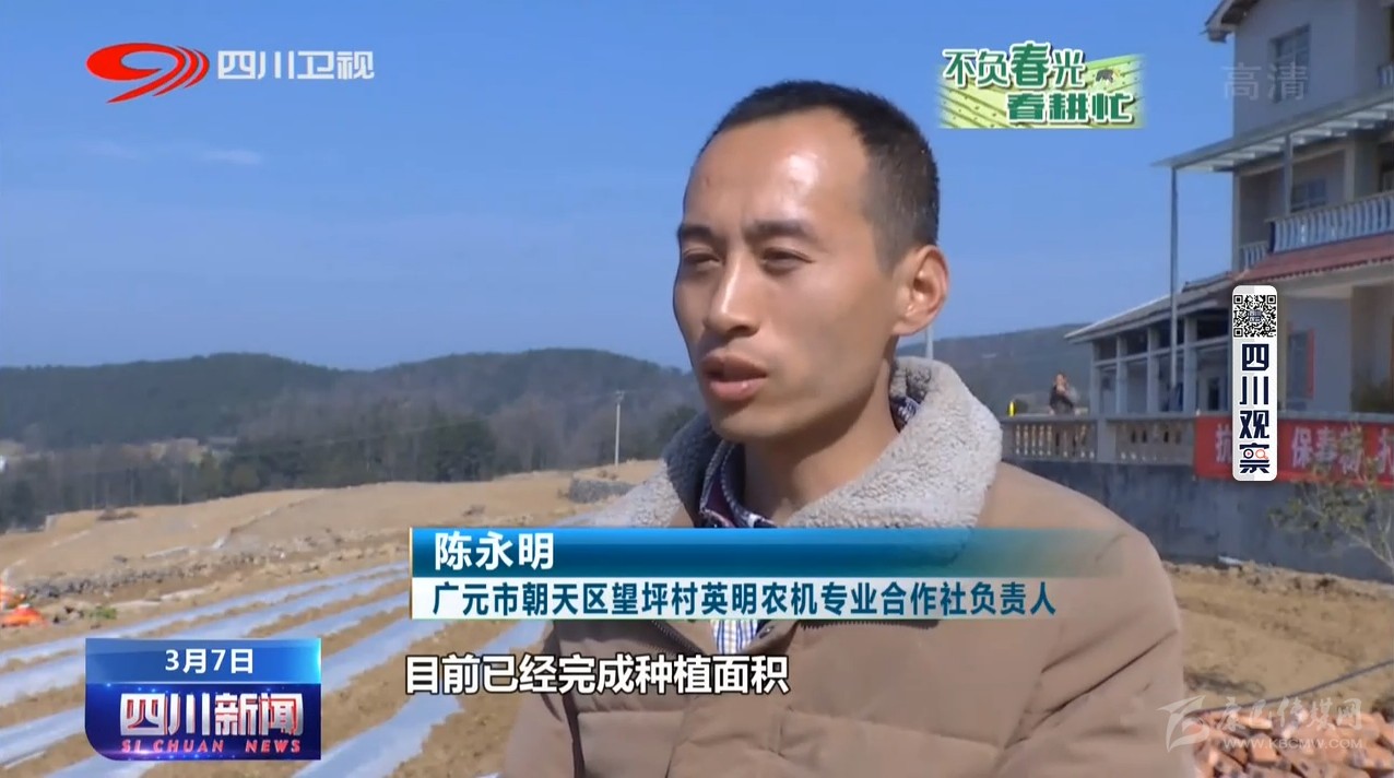 廣元市朝天區(qū)望坪村英明農機專業(yè)合作社負責人陳永明:目前已經完成種植面積有三四十畝,大量投入機器播種,300多畝地五六天就能完成。