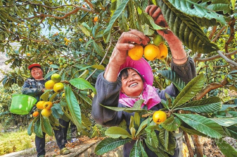 金沙江畔金陽縣熱水河村西衙門組的早春枇杷成熟了。