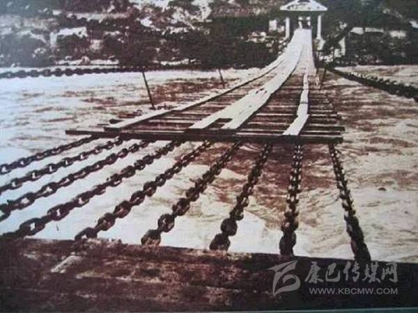 大渡河上這座橋是清康熙帝下旨修建,并御筆親題“瀘定橋”,意為“騷亂已平,瀘河安定”。此后成為連接川藏的交通咽喉之地。1863年,太平天國翼王石達開率領(lǐng)四萬余人,兵敗大渡河。