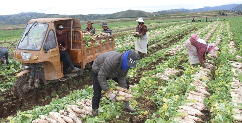 一根根白蘿卜,從理塘縣的沙礫地里,被農牧民拔出來,被迅速清洗、包裝,及時裝上排隊等候的冷鏈車。過雅江,翻折多山、二郎山,在雪域高原行駛四百公里后,抵達川西平原,再上成渝環(huán)線高速,后經(jīng)廈蓉高速,抵達珠海、深圳,進入香港、澳門市場。