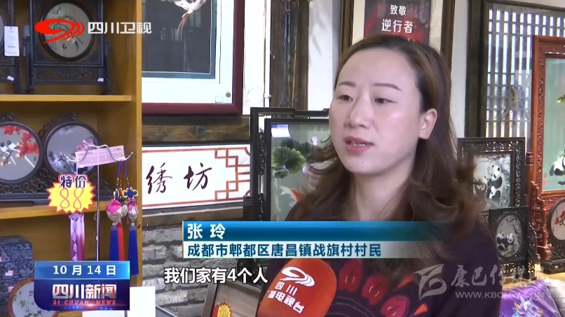 成都市郫都區(qū)唐昌鎮(zhèn)戰(zhàn)旗村村民張玲說:“村上根據(jù)我們土地入股的畝數(shù),我們家有4個人,每年能夠分到5000塊錢左右,年底還有集體經(jīng)濟(jì)分紅2000塊錢左右。我就在蜀繡坊上班,我老公在村上上班,我媽媽在家里面做民宿,這樣比以前種地時候收入高了很多?!?/p>