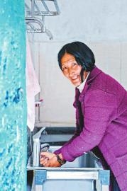 通過參加學(xué)習(xí)班,不少村民養(yǎng)成了好習(xí)慣。圖為9月13日,卡娘村一位村民正在洗手。 四川在線記者楊樹攝