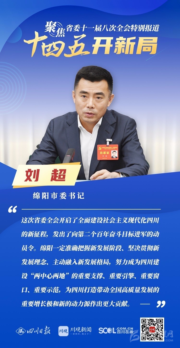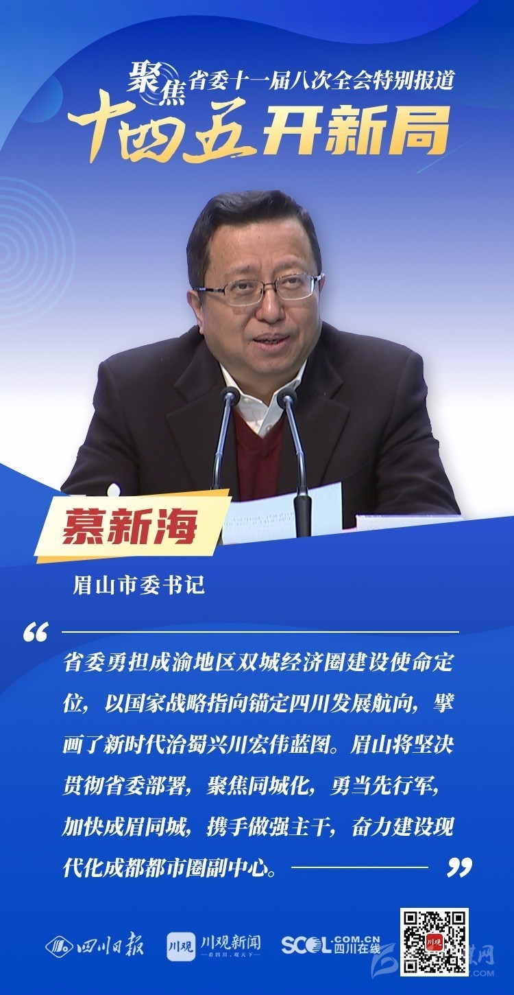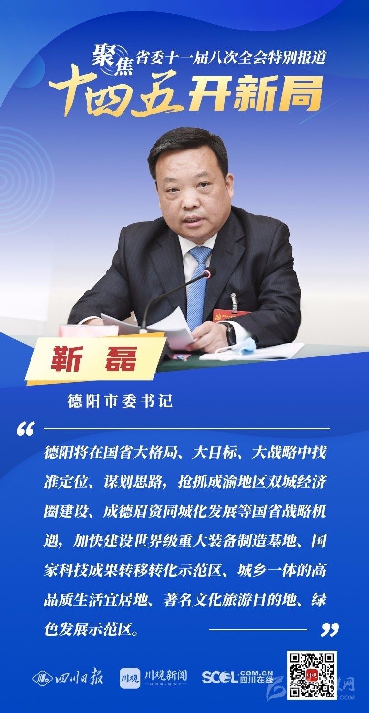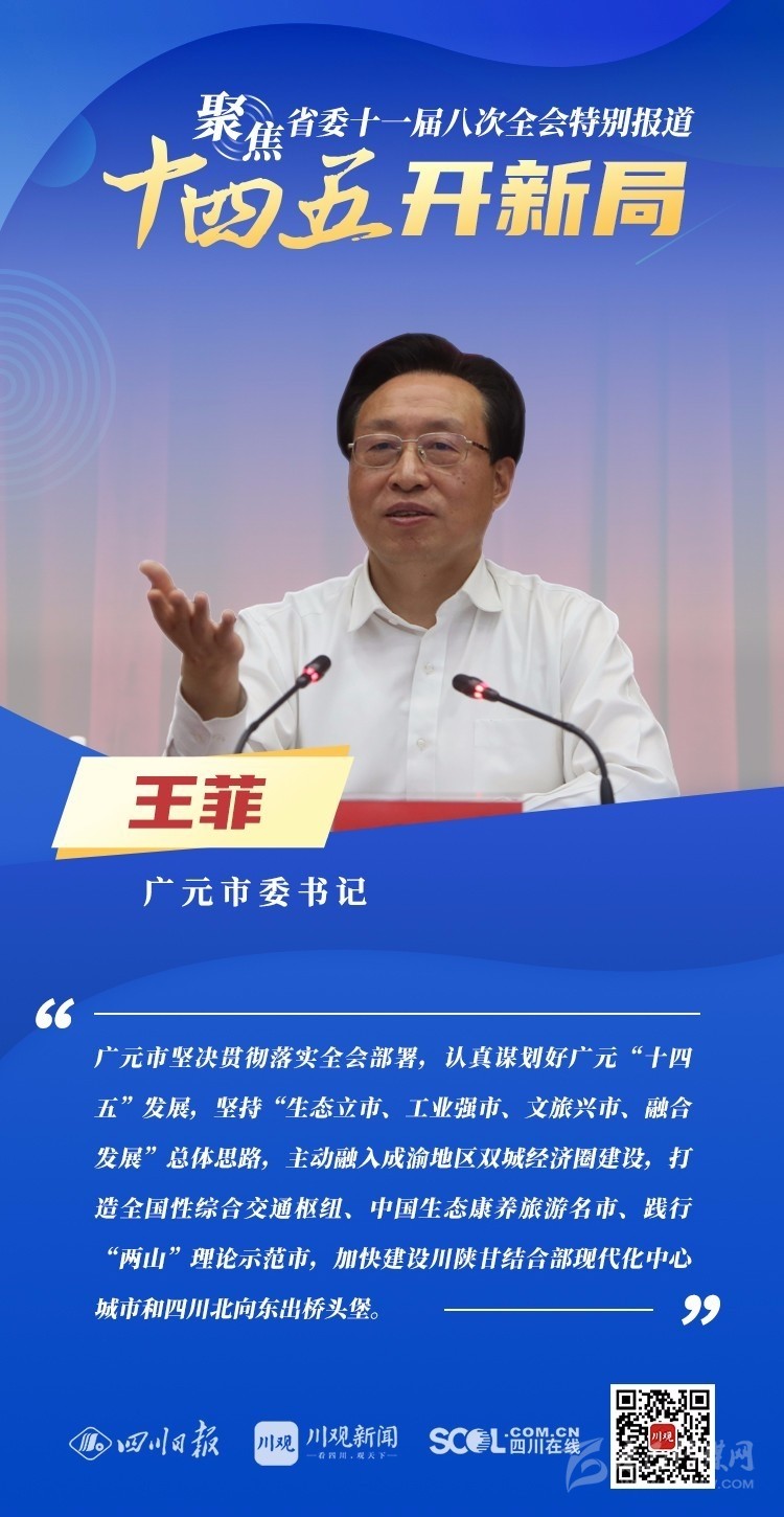 12月3日,中共四川省委十一屆八次全會(huì)在成都開幕,全會(huì)將深入學(xué)習(xí)貫徹黨的十九屆五中全會(huì)精神,審議《中共四川省委關(guān)于制定四川省國民經(jīng)濟(jì)和社會(huì)發(fā)展第十四個(gè)五年規(guī)劃和二〇三五年遠(yuǎn)景目標(biāo)的建議(討論稿)》,為未來5年乃至更長(zhǎng)時(shí)期四川發(fā)展謀劃新藍(lán)圖 。