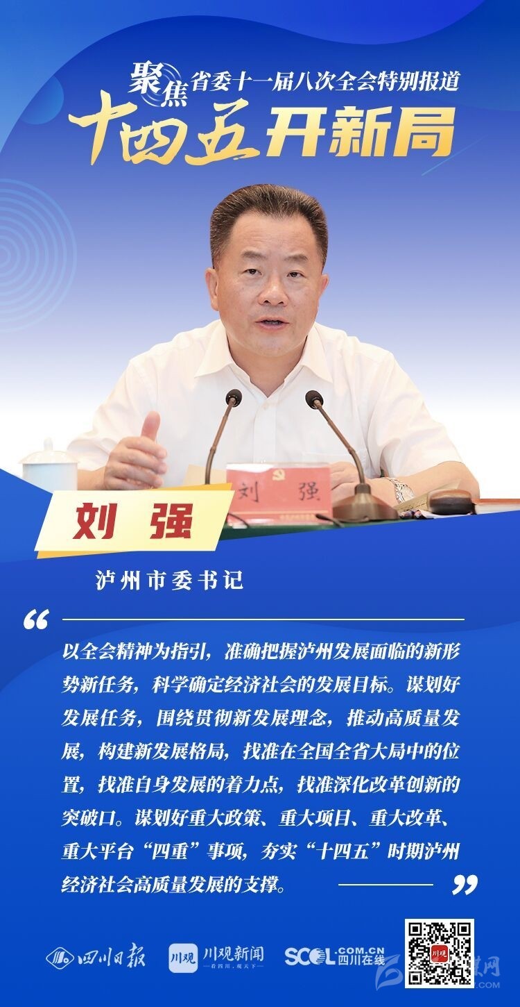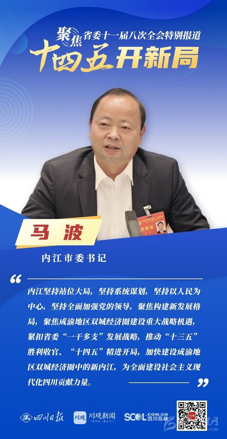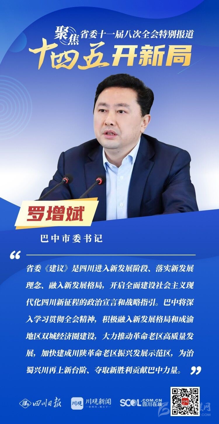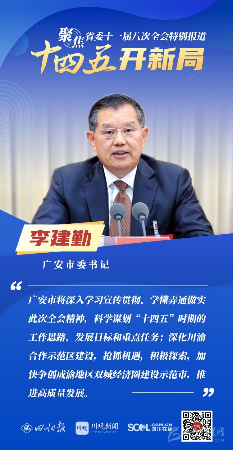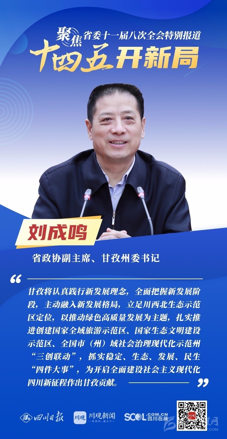 12月3日,中共四川省委十一屆八次全會(huì)在成都開幕,全會(huì)將深入學(xué)習(xí)貫徹黨的十九屆五中全會(huì)精神,審議《中共四川省委關(guān)于制定四川省國民經(jīng)濟(jì)和社會(huì)發(fā)展第十四個(gè)五年規(guī)劃和二〇三五年遠(yuǎn)景目標(biāo)的建議(討論稿)》,為未來5年乃至更長(zhǎng)時(shí)期四川發(fā)展謀劃新藍(lán)圖 。