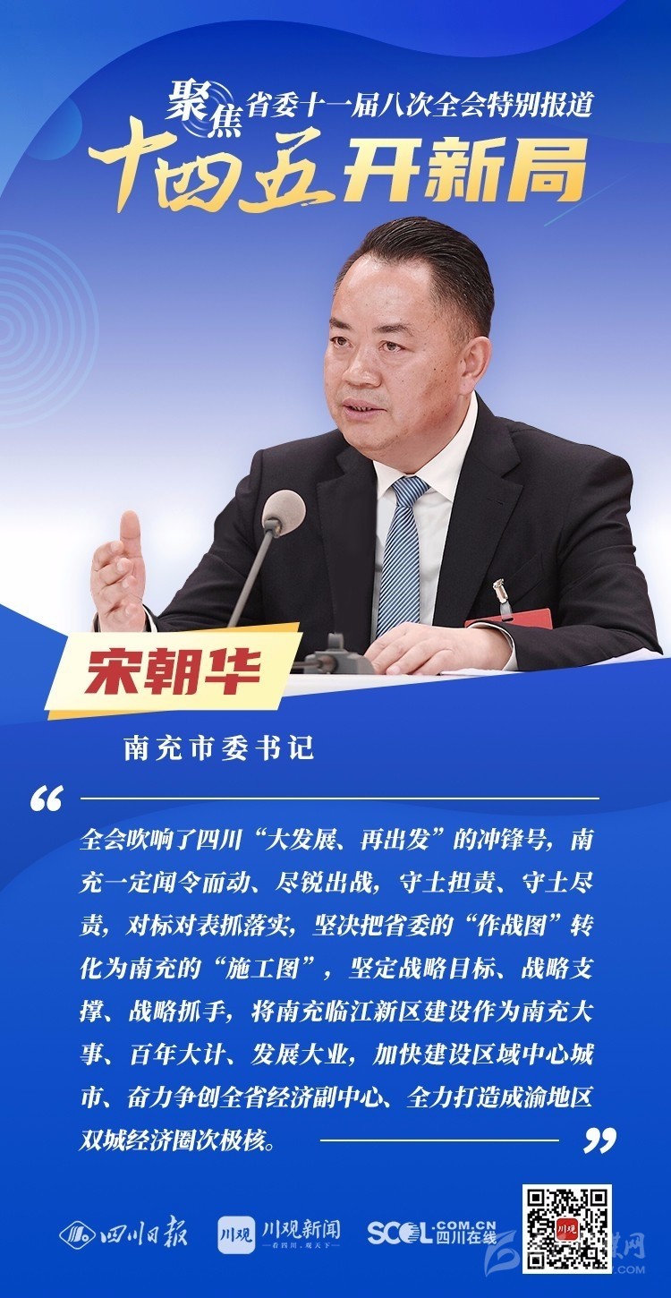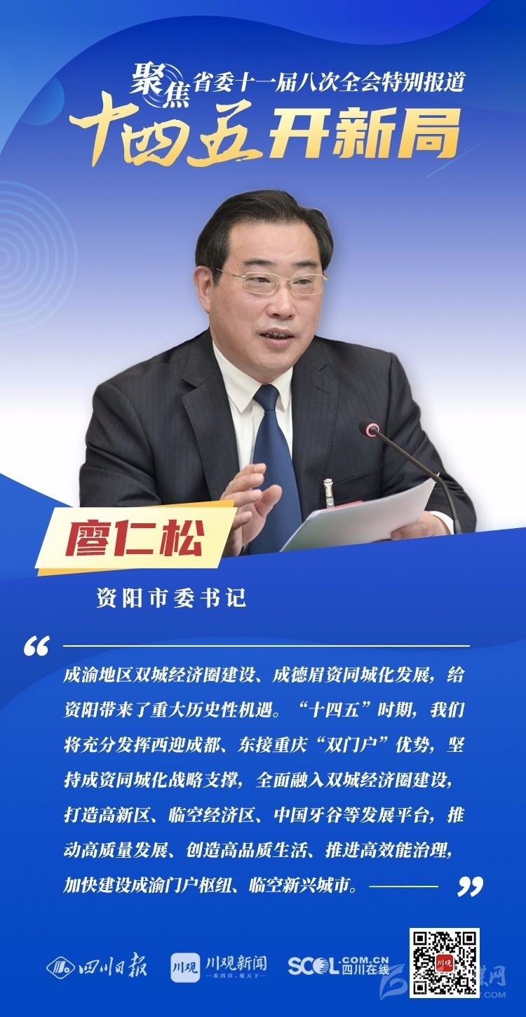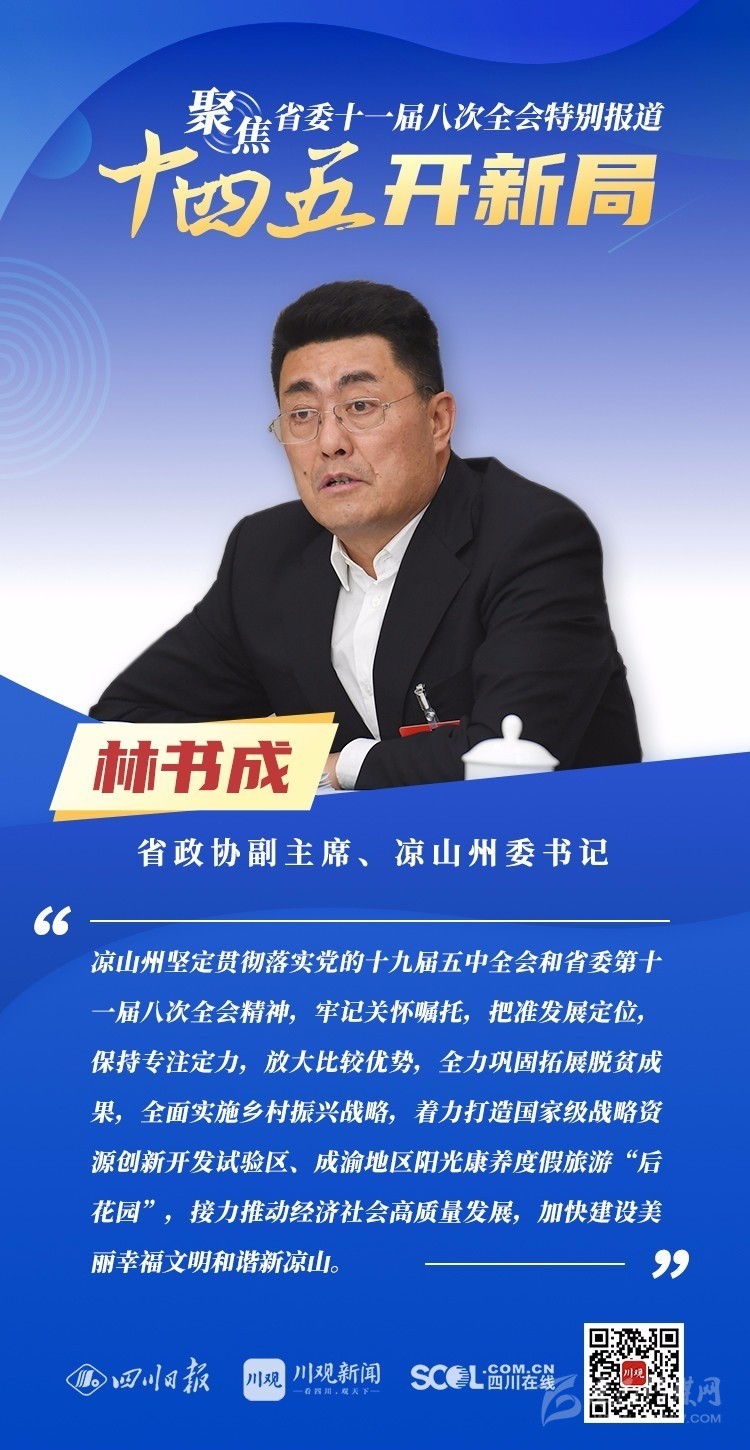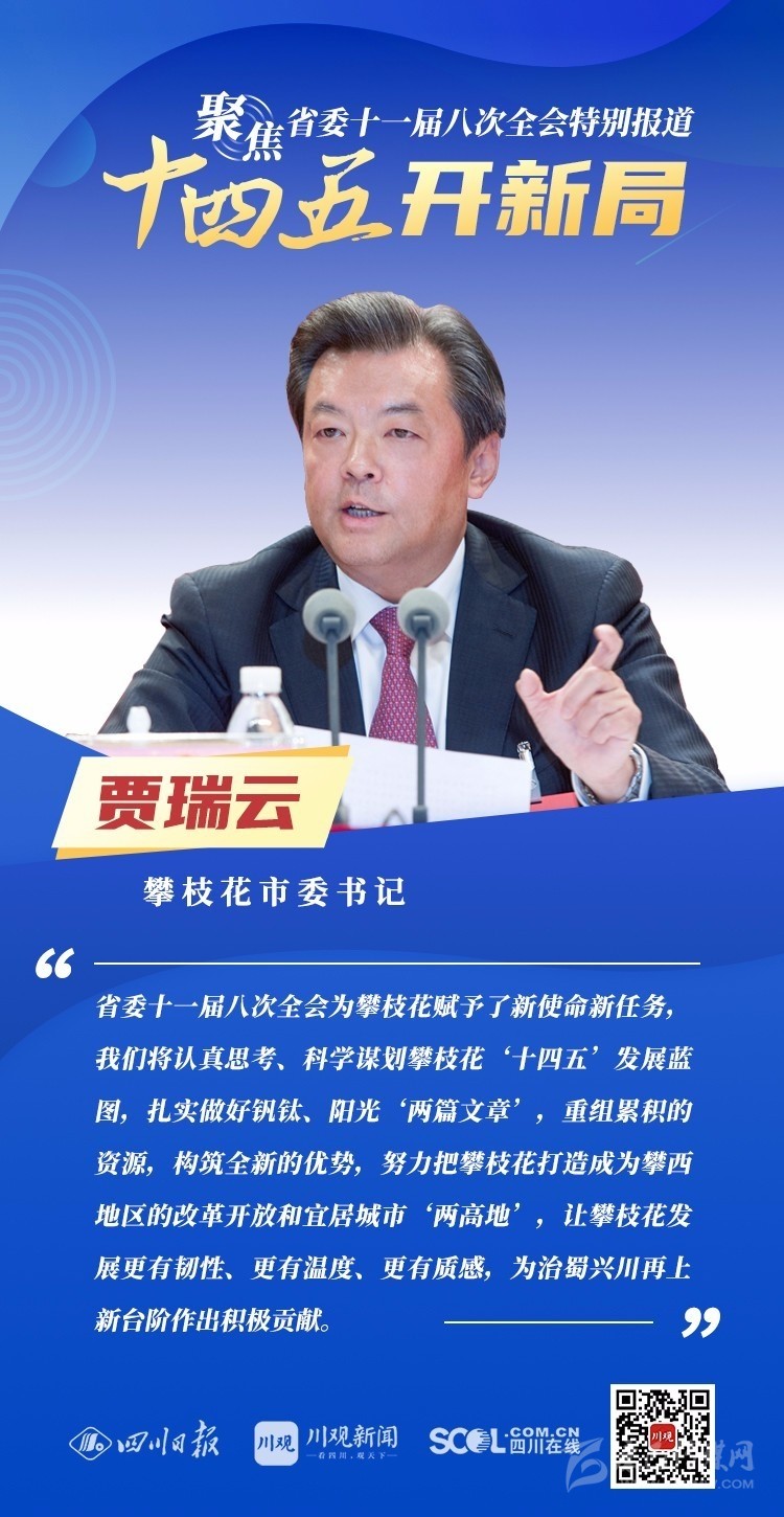 12月3日,中共四川省委十一屆八次全會(huì)在成都開幕,全會(huì)將深入學(xué)習(xí)貫徹黨的十九屆五中全會(huì)精神,審議《中共四川省委關(guān)于制定四川省國民經(jīng)濟(jì)和社會(huì)發(fā)展第十四個(gè)五年規(guī)劃和二〇三五年遠(yuǎn)景目標(biāo)的建議(討論稿)》,為未來5年乃至更長(zhǎng)時(shí)期四川發(fā)展謀劃新藍(lán)圖 。