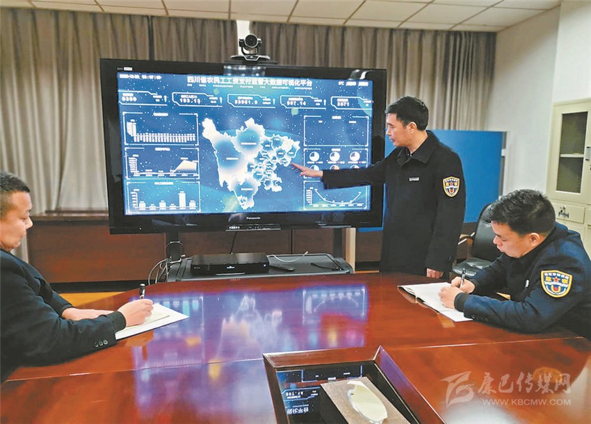 省勞動(dòng)保障監(jiān)察總隊(duì)工作人員通過“四川省農(nóng)民工工資支付監(jiān)管大數(shù)據(jù)可視化平臺(tái)”,對全省建筑施工項(xiàng)目工資支付情況進(jìn)行分析。