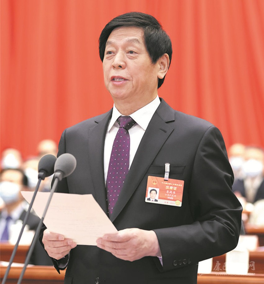 大會(huì)主席團(tuán)常務(wù)主席、執(zhí)行主席栗戰(zhàn)書主持大會(huì)。新華社 發(fā)