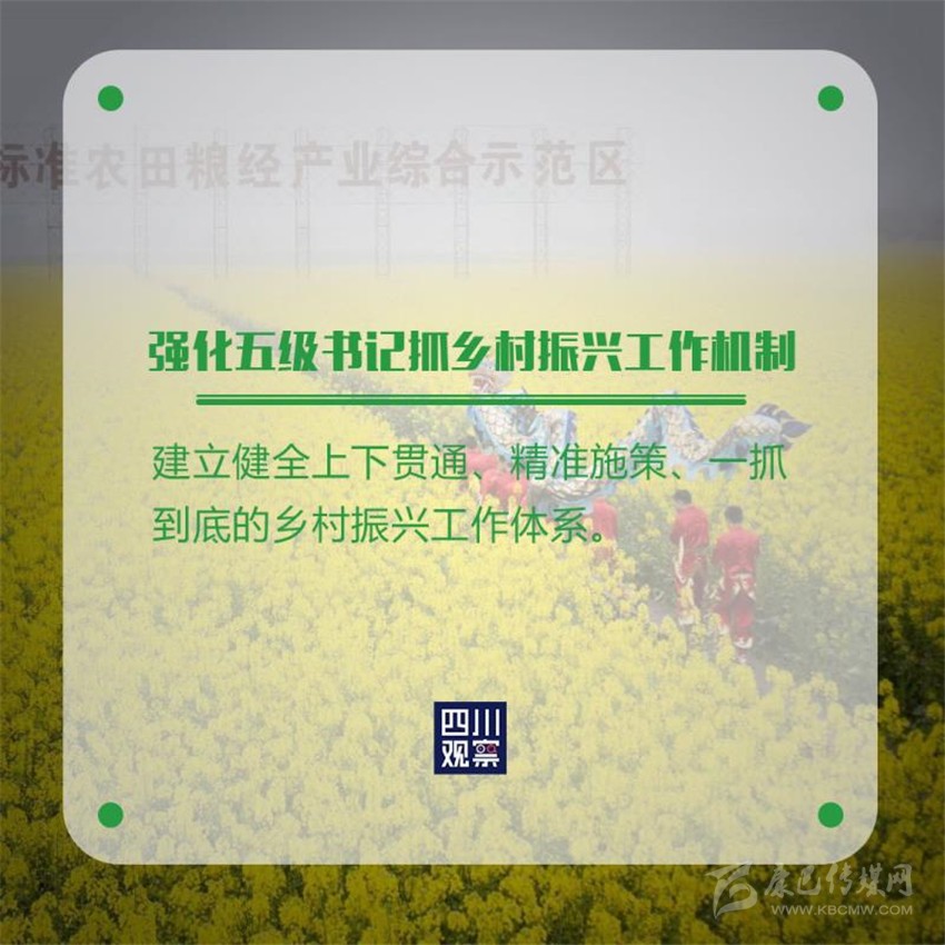 近日,中共四川省委、四川省人民政府印發(fā)《關(guān)于全面實施鄉(xiāng)村振興戰(zhàn)略開啟農(nóng)業(yè)農(nóng)村現(xiàn)代化建設(shè)新征程的意見》,全文共7個部分41條,這是2004年以來,四川省委、省政府連續(xù)18年,以省委一號文件形式部署“三農(nóng)”工作。文件提出了哪些硬舉措?