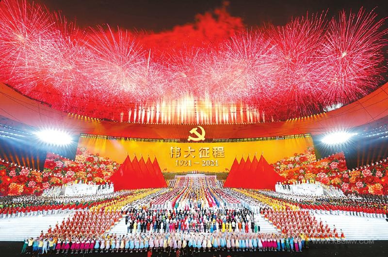 6月28日晚,北京,國家體育場(chǎng)燈光璀璨、人聲鼎沸。習(xí)近平等黨和國家領(lǐng)導(dǎo)人同約2萬名觀眾一起觀看文藝演出《偉大征程》,共同慶祝中國共產(chǎn)黨成立100周年。