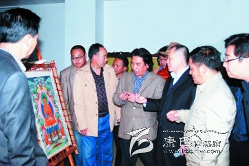 本網(wǎng)訊(高志安 鄭勇 文/圖) 6月21日,國家文化部非遺司司長馬文輝在省文化廳副廳長澤波陪同下,到四川省藏文學(xué)校調(diào)研藏族唐卡畫繪藝術(shù)嘎瑪嘎孜畫派教學(xué)情況。嘎瑪嘎孜畫派國家級(jí)傳承人、省藏校高級(jí)講師顔登澤仁就嘎瑪嘎孜畫派的歷史、傳承情況以及現(xiàn)狀向馬文輝一行作了匯報(bào)。省藏校負(fù)責(zé)人匯報(bào)了學(xué)校唐卡藝術(shù)教學(xué)情況。馬文輝一行一邊聽取匯報(bào),一邊觀看師生作品和學(xué)生現(xiàn)場作畫,并向師生了解情況,聽完匯報(bào)、看完學(xué)生繪畫后,馬文輝對(duì)省藏校的唐卡藝術(shù)教育工作給予了高度評(píng)價(jià),并要求學(xué)校繼續(xù)做好弘揚(yáng)民族優(yōu)秀傳統(tǒng)文化工作,為社會(huì)主義文化大發(fā)展作出新貢獻(xiàn)。
