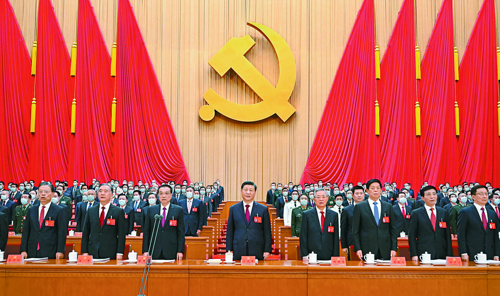 10月16日,中國共產(chǎn)黨第二十次全國代表大會在北京人民大會堂開幕。這是習近平、李克強、栗戰(zhàn)書、汪洋、王滬寧、趙樂際、韓正、胡錦濤在主席臺上。 新華社記者 李學仁 攝