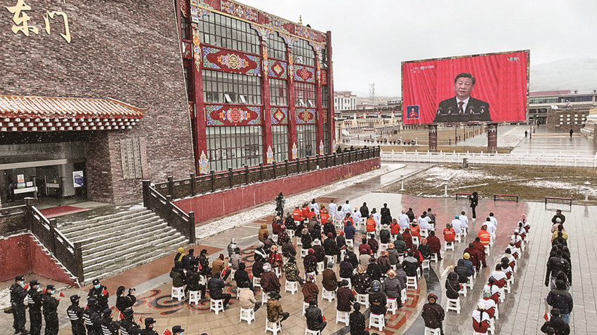 “要增強全黨全國各族人民的志氣、骨氣、底氣,不信邪、不怕鬼、不怕壓,知難而進、迎難而上,統(tǒng)籌發(fā)展和安全,全力戰(zhàn)勝前進道路上各種困難和挑戰(zhàn),依靠頑強斗爭打開事業(yè)發(fā)展新天地?!甭牭綀蟾嬷械倪@句話時,州政府辦干部澤仁拉姆感到特別提氣。
