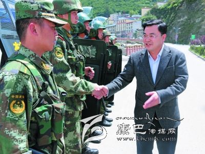 本網(wǎng)訊(記者 張濤 文/圖)7月6日下午,州委書記胡昌升利用周末休息時(shí)間,冒著炎炎烈日,到康定縣各治安卡點(diǎn)看望慰問(wèn)了堅(jiān)守崗位的一線執(zhí)勤民警,武警、消防官兵和城管隊(duì)員,勉勵(lì)大家要繼續(xù)發(fā)揚(yáng)不怕苦、不怕累、頑強(qiáng)拼搏的作風(fēng)和甘于奉獻(xiàn)的精神,為維護(hù)甘孜的和諧穩(wěn)定,確保人民群眾生命財(cái)產(chǎn)安全做出更大貢獻(xiàn)。