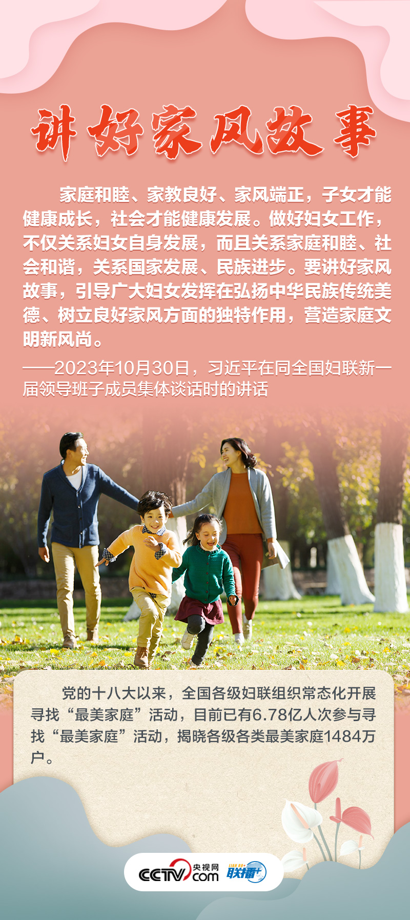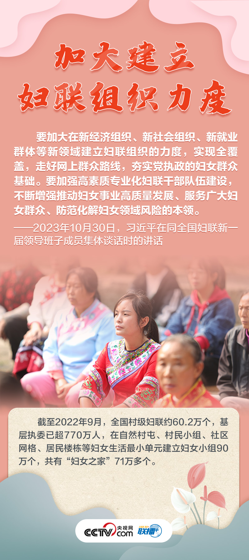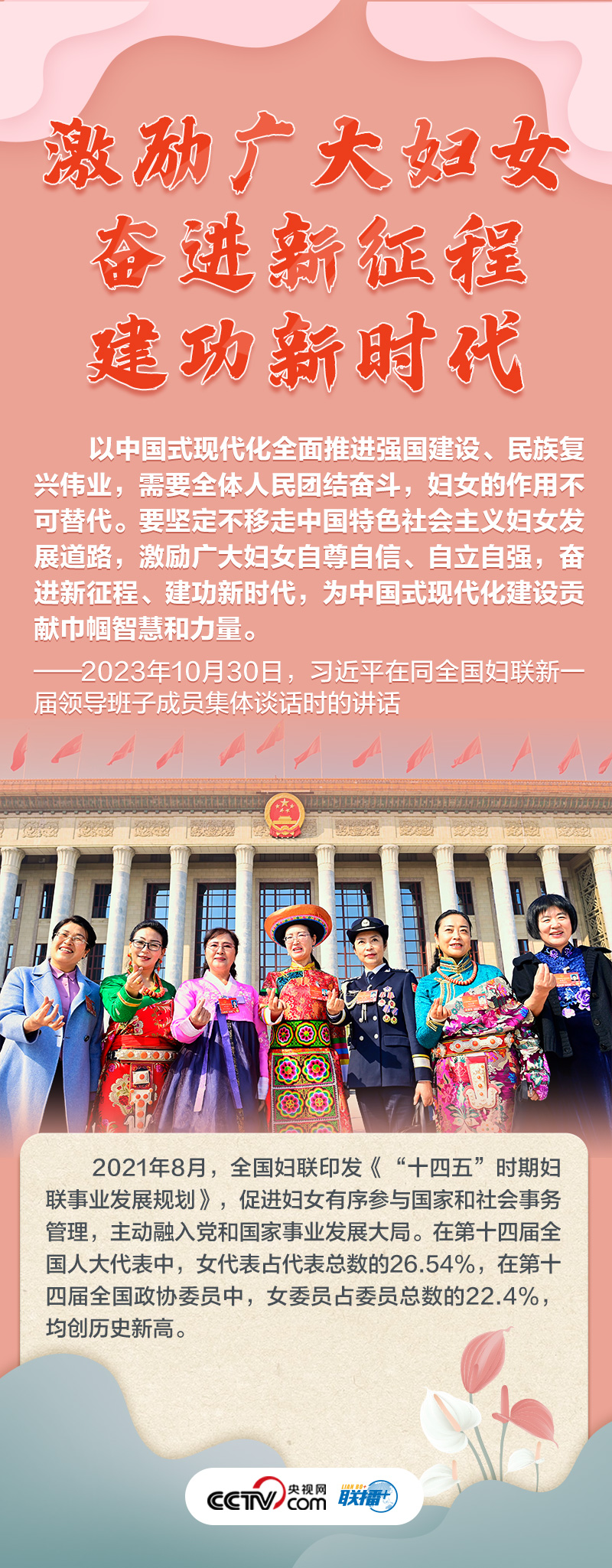 如何做好新時代新征程上婦女兒童工作,凝聚起中國式現(xiàn)代化建設的巾幗力量?央視網(wǎng)《聯(lián)播+》特推出海報,與您一起了解總書記最新指示,以及近年來婦女事業(yè)和婦聯(lián)工作取得的非凡成就。